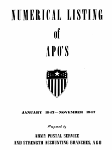From my earlier post, written by Dave Kent of the Military Postal History Society, I learned that Army Post Office numbers, or APOs, are an effective means of tracking the location of a military unit. I expect to learn more going forward about how specific that information will become.