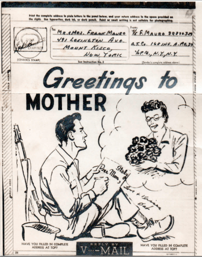 Babe was in the army for two Mother’s Days — 1943 and 1944 — and was killed shortly before Mother’s Day 1945. This could not have been for the 1943 Mother’s Day because he was still in the States at the time (no need for V-mail) and he notes his new rank of “Technician Fifth Grade” in the return address.