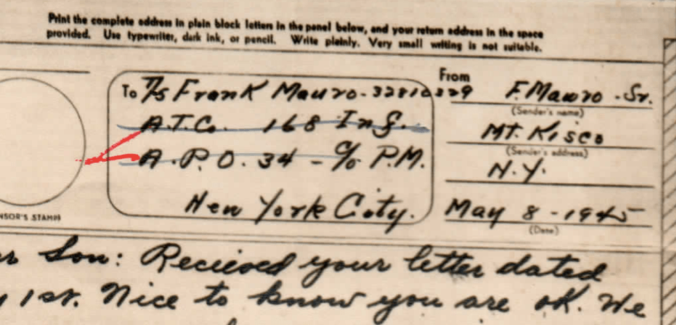 This letter was written on May 8, 1945 — VE Day. It was four days after Babe’s death. That my grandparents did not yet know their son was killed illustrates how slowly information moved in 1945. The postmark was July 31, 1945, and that envelope also included the original envelope that enclosed my grandfather’s letter. The letter, by the way, references a letter from Babe dated May 1; I don’t have that letter — unless my grandfather is actually referring to the postmark on this letter, which appears to be the last I have from Babe to his parents.